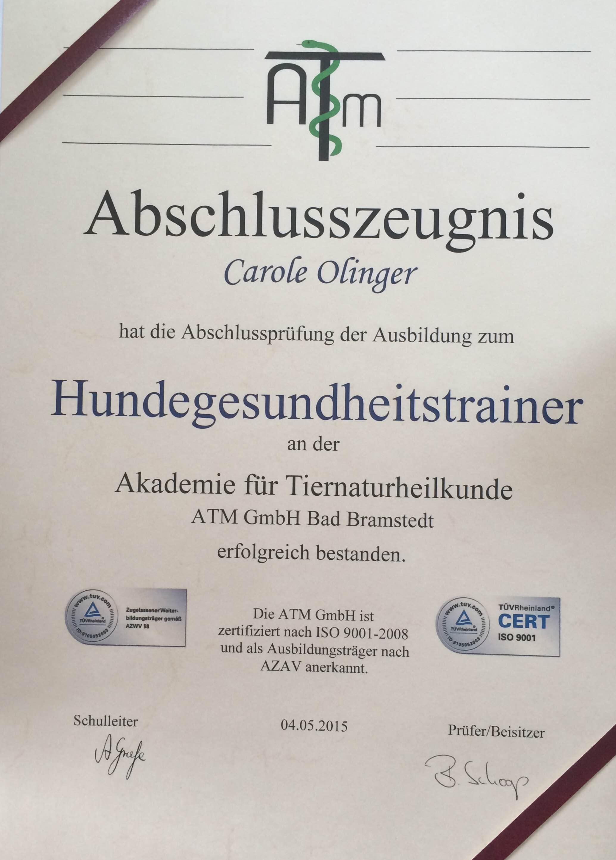 Am 4. Mai 2015 war es so weit: Prüfung zum Hundegesundheitstrainer in Bad Bramstedt.